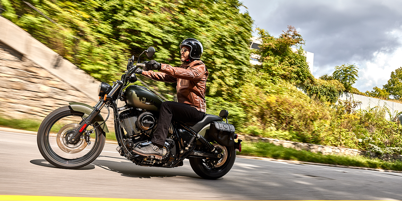 With a low seat height, a solo saddle, and mid-mount foot pegs that keep your feet underneath you, the Chief gives every rider complete control.